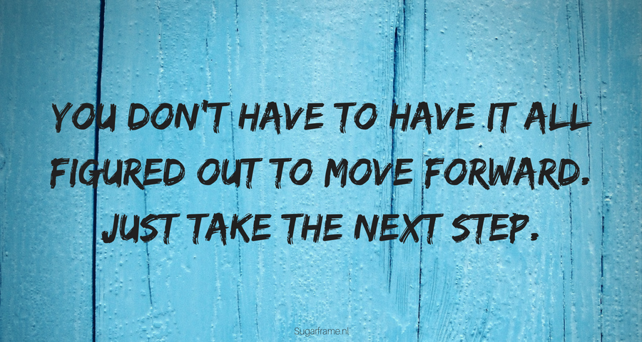 Ik wil altijd alles weten. Het liefst maak ik overal een plan voor. Maar dat lukt nu niet. Ik weet niet precies hoe alles loopt en ik kan ook niet voorspellen wanneer ik mij beter ga voelen. Maar dat betekent niet dat ik stil moet zitten tot ik een plan heb. Ik kan beter vast stappen vooruit zetten en onderweg een plan maken, aanpassen en het plan soms ook aan de kant schuiven.