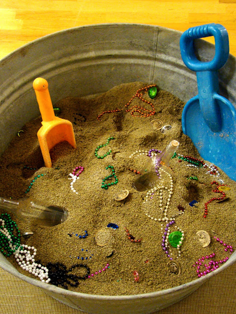 Op deze website staan allerlei ideeën voor een piratenfeest. Leuk, maar het ging mij vooral om deze schat in een emmer. Volgens mij is dat een supereffectieve manier om kinderen bezig te houden en het kost je weinig voorbereidingstijd.